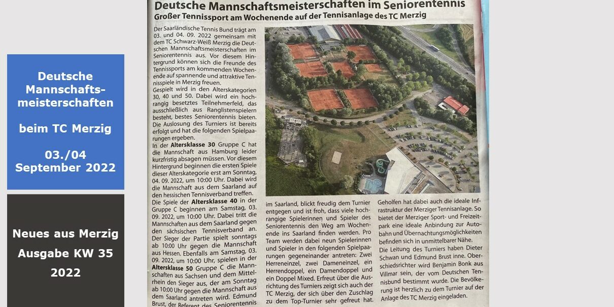 Auch in diesem Jahr freuen wir uns, die dt. Mannschaftsmeisterschaften der Klasse C auf unserer schönen Anlage des Tennisclub Schwarz-Weiss Merzig ausrichten zu dürfen.